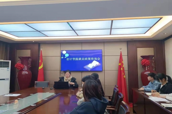 会计学院成立以院长、书记为组长,其他学院领导为副组长,各科室主任为成员的就业创业工作领导小组,由党总支副书记担任就业创业主任,具体负责就业创业工作。领导小组定期召开工作会议,讨论安排相关工作,促使就业工作按时按量按质完成。