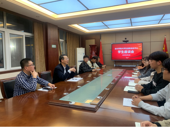 为更好地服务青年大学生创新创业,将创新创业工作走深走实,不断提升大学生就业创业意识和能力,10月19日晚上,会计学院在三楼会议室举行了大学生创新创业中心学生座谈会,院长王长旭、大学生创新创业中心负责人刘鹏以及大创中心学生代表32人参加。