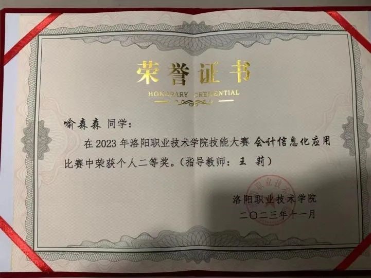 2023年洛阳职业技术学院技能大赛会计信息化比赛个人二等奖