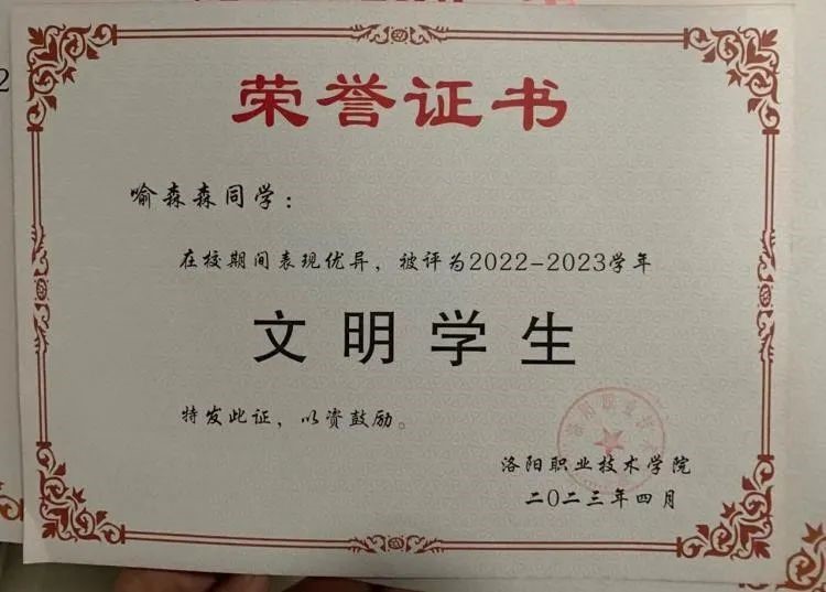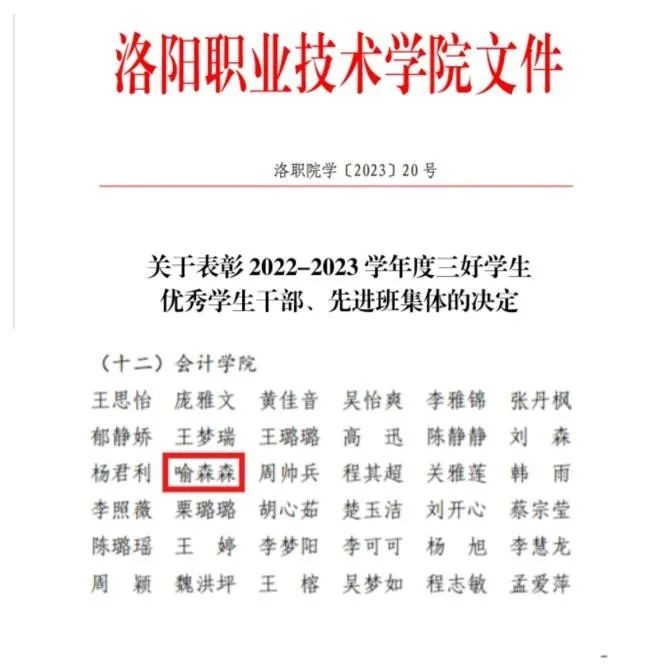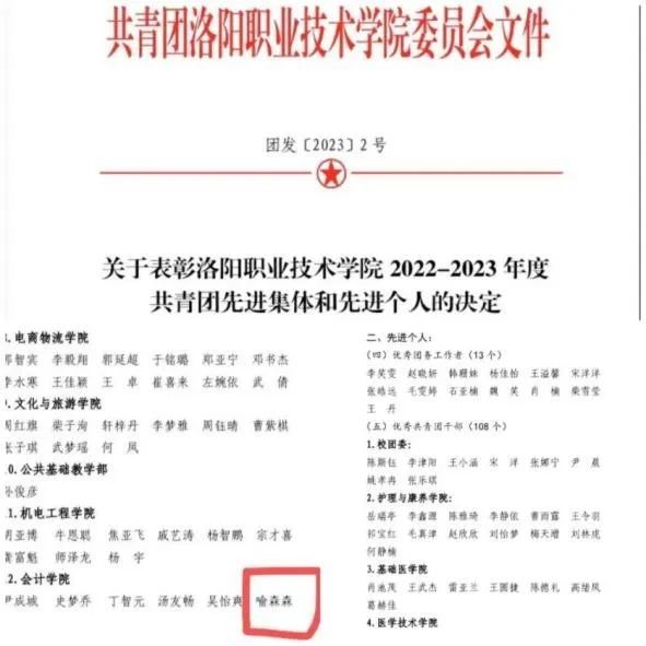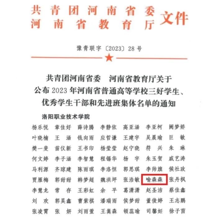 2023年洛阳职业技术学院五四评优“优秀共青团干部”