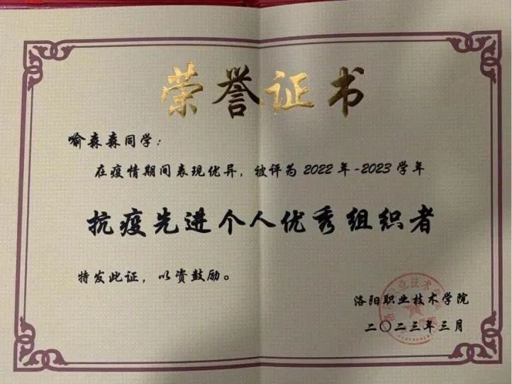 抗疫先进个人优秀组织者-会计学院-喻森森