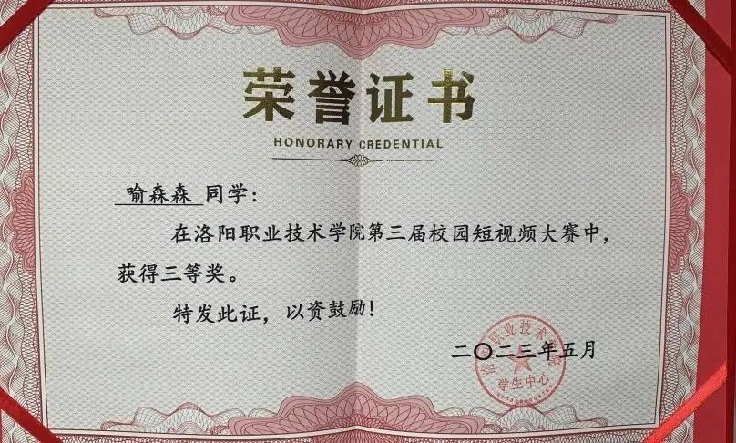 2023年洛阳职业技术学院“短视频大赛三等奖、优秀奖”