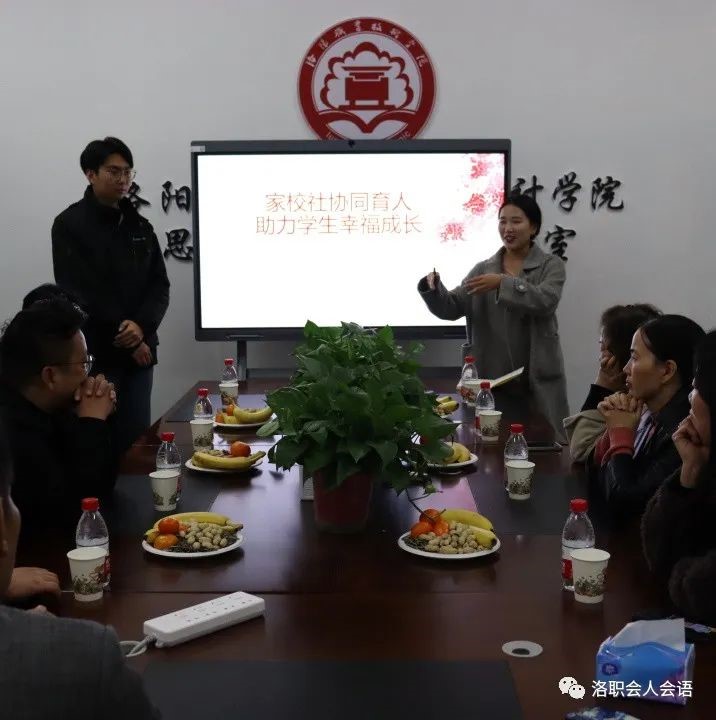 学院邀请家长在会议室座谈