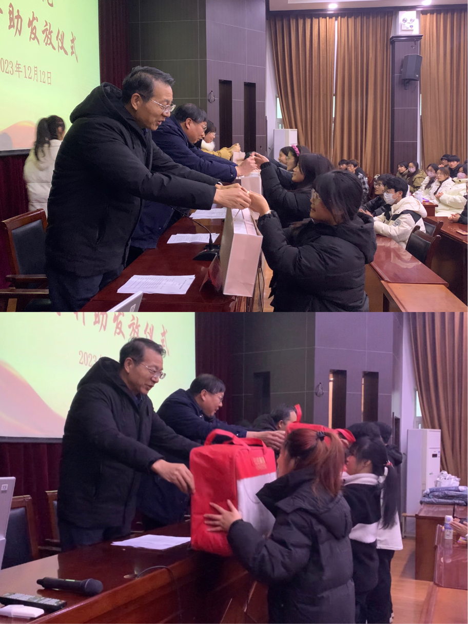 随后,出席领导为困难学生们发放棉被、棉衣、四件套等物品,为他们送去温暖和关怀,并勉励他们在接下来的学习生活中更加刻苦努力,早日成为栋梁之材。