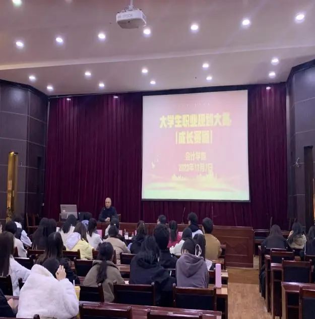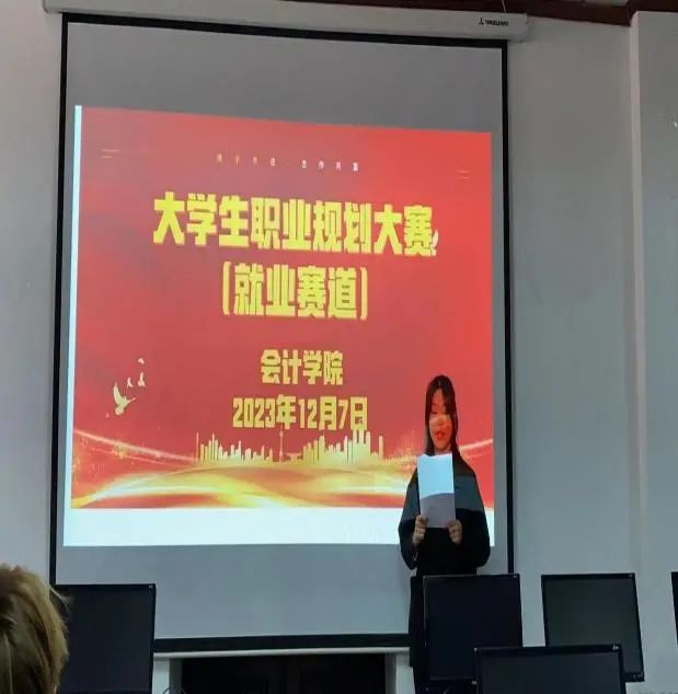 为了激发我院大学生职业规划意识,使同学们能尽快熟悉工作岗位、适应工作角色、更好地认识自我、完善自我,达到促进学生快就业、高质量就业的最终目的,依据我校大学生职业生涯规划大赛相关安排,会计学院于2023年12月7日在教学楼六楼会议室(成长赛道)和实训楼一楼(就业赛道)举行了大学生职业规划大赛。