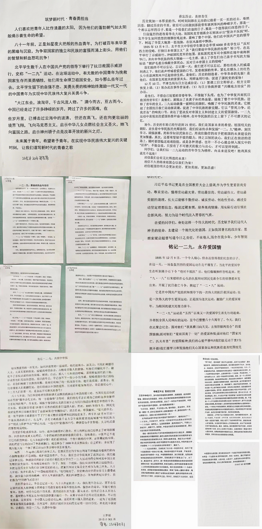 同学们参赛作品内容紧扣纪念“一二·九”运动主题,此次活动增进了同学们对历史知识的了解,让同学们重温了那段刻骨铭心的历史,珍惜今天来之不易的幸福。我们要铭记历史,以史为鉴,不忘百年奋斗路,保持初心,乘风破浪,扬帆远航。