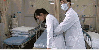 注意一只手将患者额头下压,一只手将下巴上台,以开放气道。
