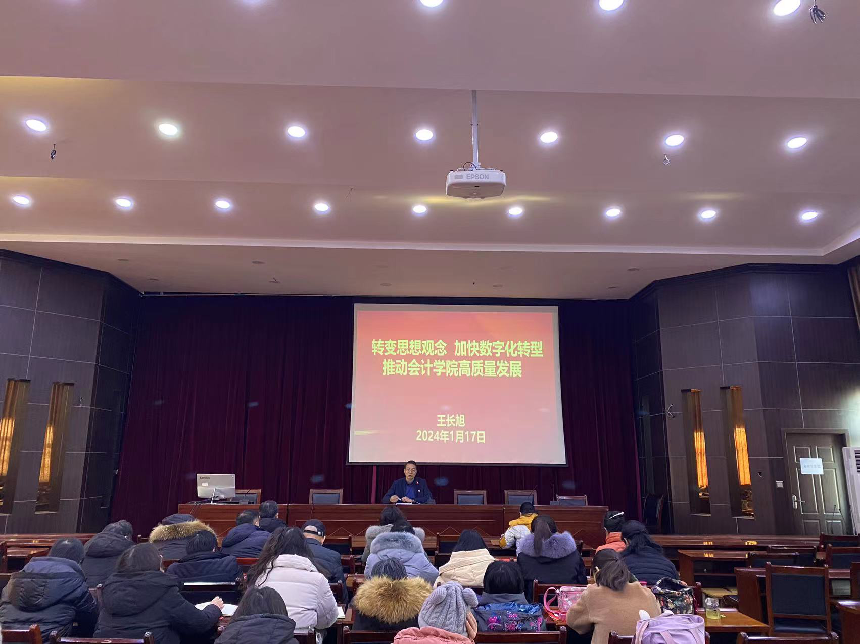 为积极面对全面推进职业教育高质量发展的新机遇,加快推进教育数字化校园建设,推动学院事业高质量发展,1月17日上午,院长王长旭在会计学院六楼会议室召开“转变思想观念·加快数字化转型——推动会计学院高质量发展”的专题报告会。党总支书记宫凯、副书记梁静以及全体教职工参加了此次会议。