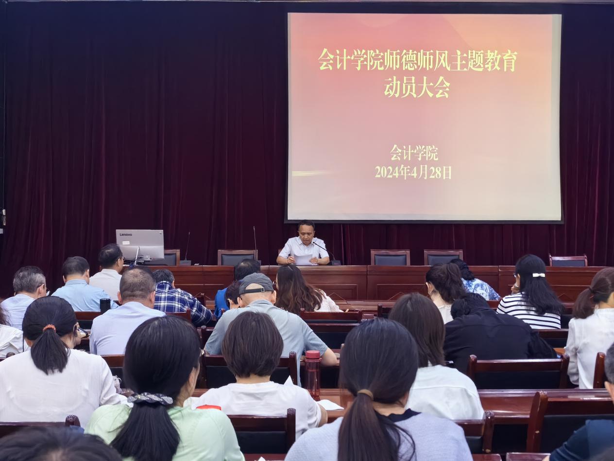 为深入贯彻落实习近平总书记关于教育的重要论述和关于教师队伍建设的重要指示批示精神,全面加强和改进新时代师德师风建设,会计学院于4月28日在六楼会议室召开师德师风主题教育动员大会,会议由党总支书记宫凯主持,全体教职工参加。