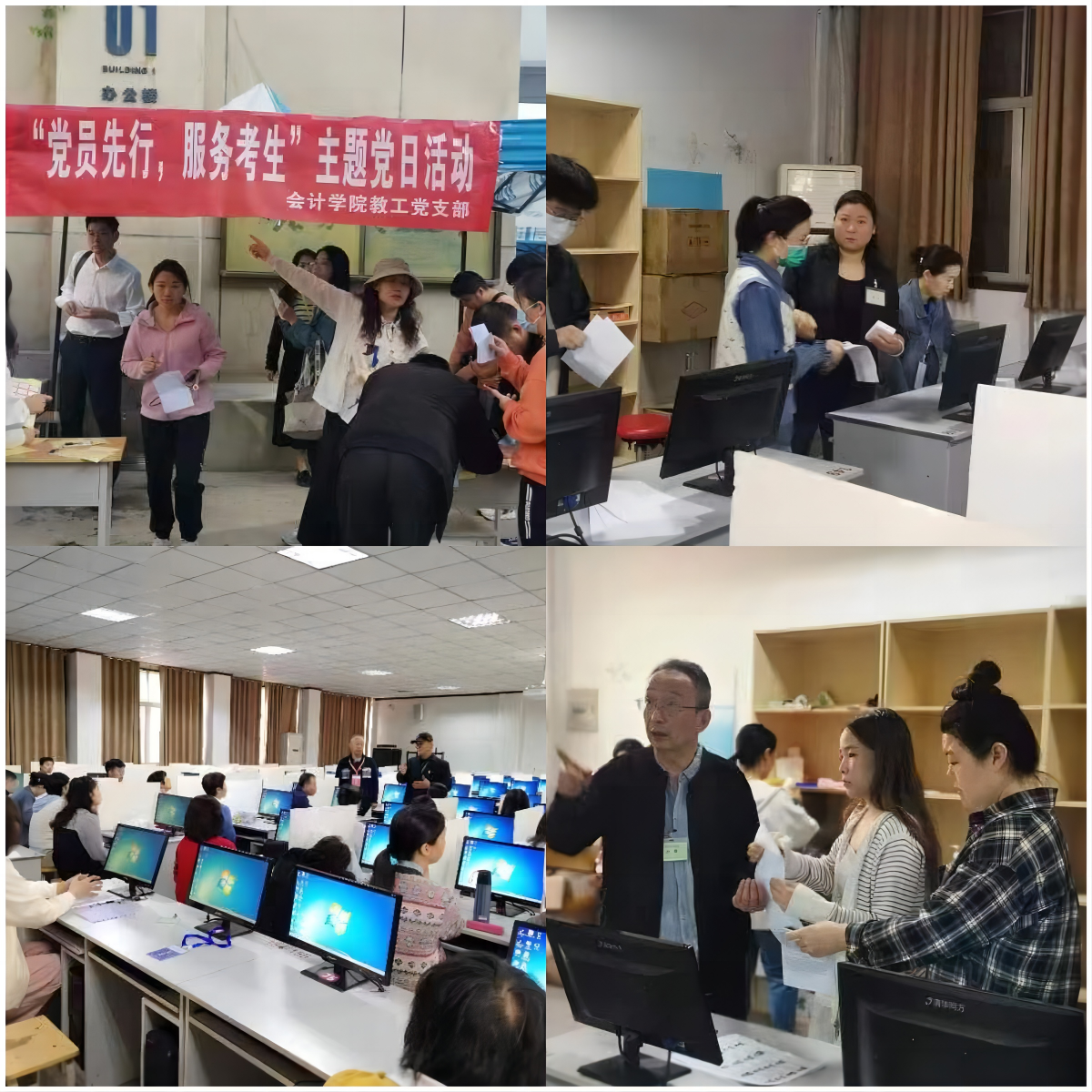 4月20日至4月21日,根据学校工作安排,会计学院承接洛阳市2024年度全国卫生专业技术资格无纸化考试工作。会计学院教工党支部组织开展了“党员先行,服务考生”主题党日活动。