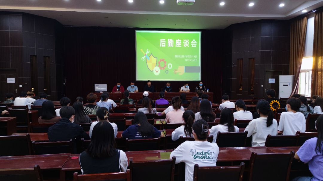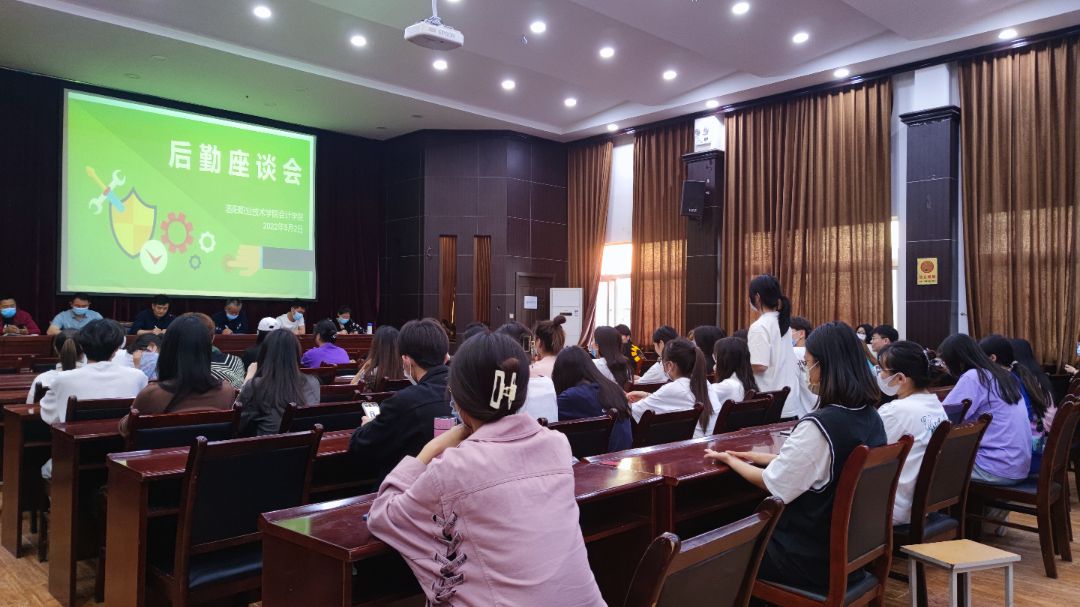 后勤工作是一项十分重要的工作,是学院各级部门做好各项工作的重要保障,为了更好的使后勤工作服务同学。2022年5月2日,我院领导在六楼会议室组织院学生代表召开了后勤座谈会。