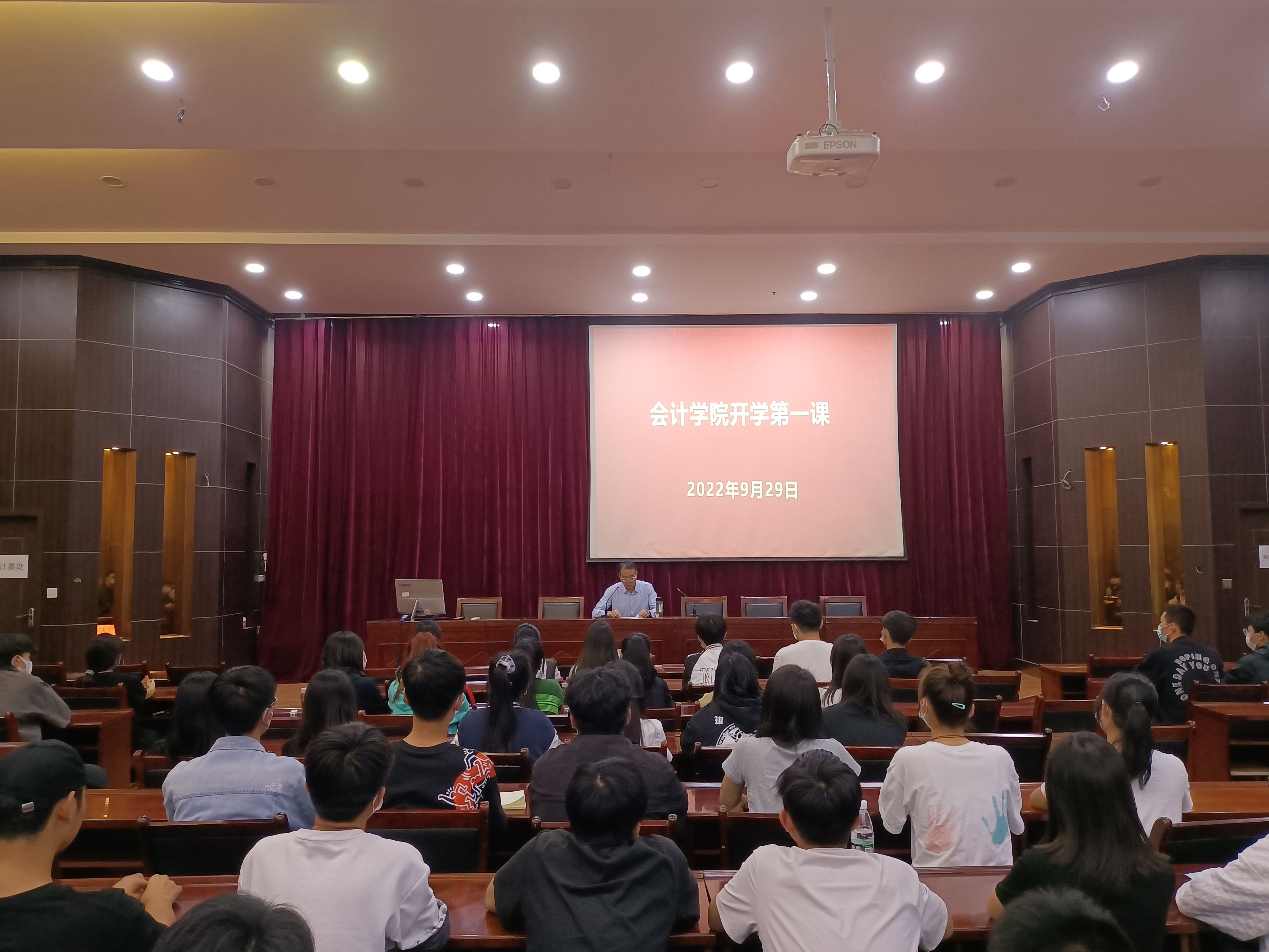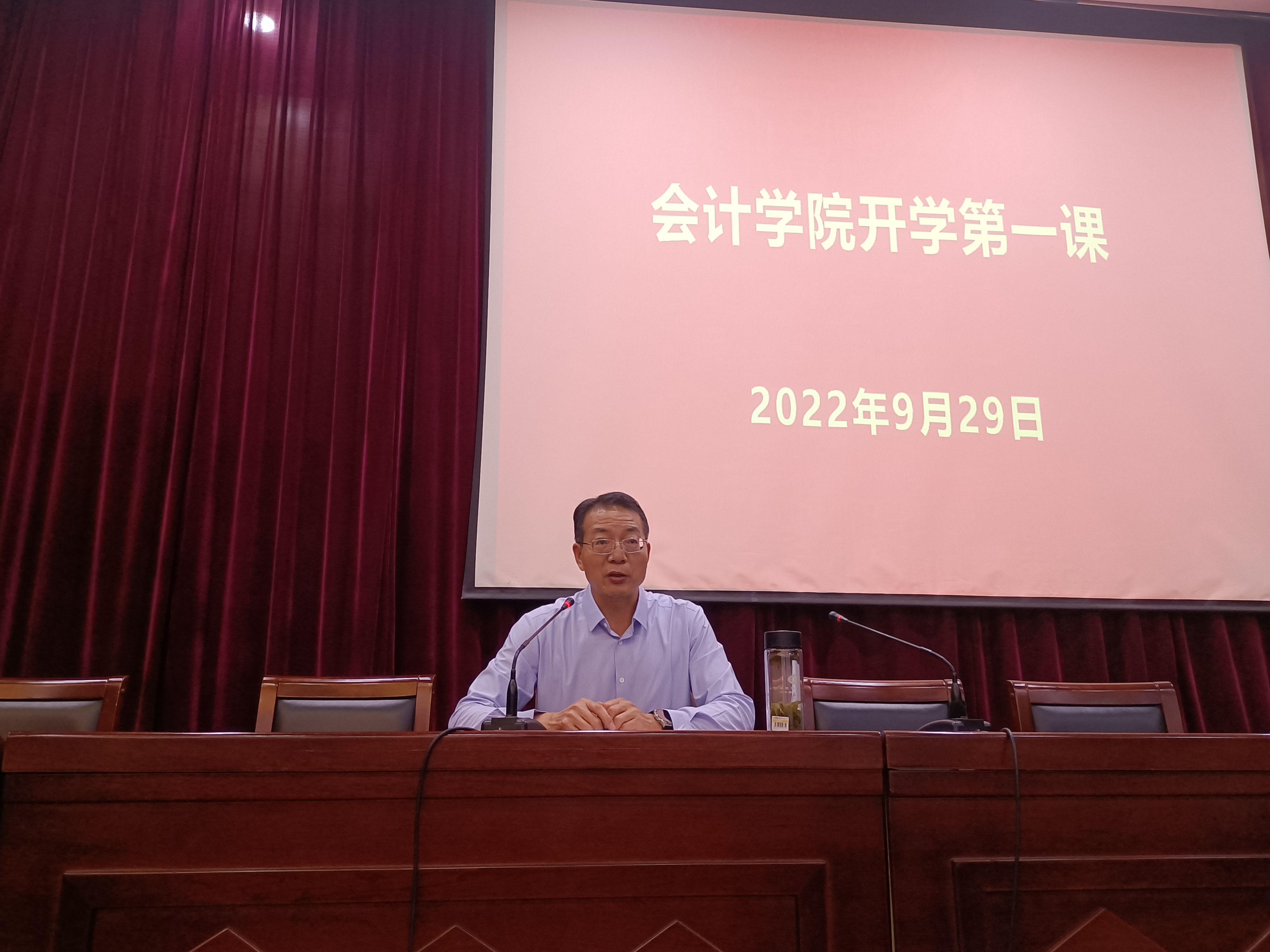 崭新的学期开始,为了营造一个良好的开端,激发学生们的学习热情,提升我院尊师重教的浓厚氛围。会计学院院长王长旭在2022年9月29日于我院六楼会议室,为22级新生召开开学第一课会议。