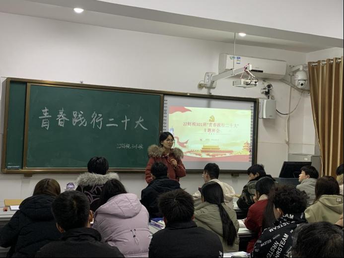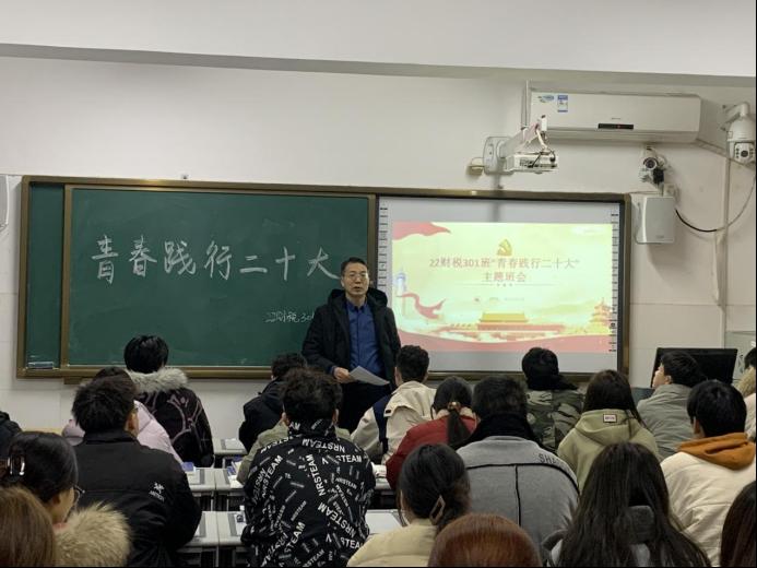 2月22日晚,会计学院2022级财税301班在教学楼708教室开展了“青春践行二十大”主题教育班会,学生成长导师会计学院院长王长旭、辅导员魏笑以及2022级财税301班全体同学参加活动。