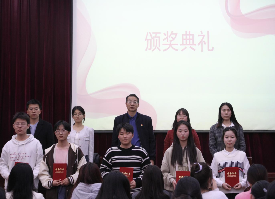 刘智莉主任宣读关于2022年度各项表彰决定, 表彰大会共设优秀学生干部、优秀志愿者、文明学生和抗疫先进个人四个篇章,对过去一年以来在抗疫奉献、拼搏青春、文明建设等方面取得突出成绩和优异表现的学生进行表彰。随后,会议举行了简洁而热烈的颁奖仪式。与会各位领导老师一一为获奖学生颁发荣誉证书并合影留念。