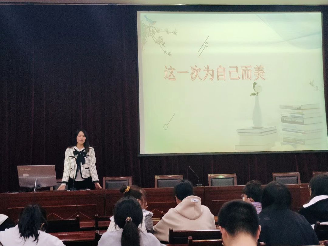 抛开职业,忘掉年龄,以自己的方式,存在、绽放。你取悦自己的样子,真的很美。3月7日晚,我院学工办王希冉老师宣讲了以“这一次为自己而美”主题活动。