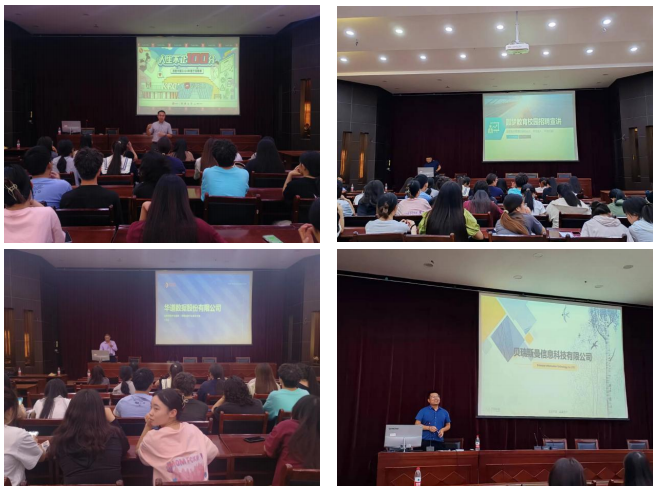 为增进毕业生对企业的深入了解,郑州肯德基有限公司、华道数据股份有限公司、洛阳艺成园梦教育咨询有限公司、苏州贝瑞斯曼信息科技有限公司四家企业在六楼会议室进行了现场宣讲。企业代表向同学们详细介绍了公司概况、校招岗位、薪资待遇、晋升发展、报名途径等,使得同学们对招聘单位有了更深入的了解,为后续的求职就业做准备。