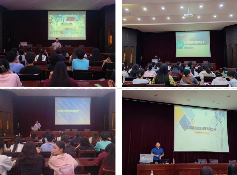 为增进毕业生对企业的深入了解,郑州肯德基有限公司、华道数据股份有限公司、洛阳艺成园梦教育咨询有限公司、苏州贝瑞斯曼信息科技有限公司四家企业在六楼会议室进行了现场宣讲。企业代表向同学们详细介绍了公司概况、校招岗位、薪资待遇、晋升发展、报名途径等,使得同学们对招聘单位有了更深入的了解,为后续的求职就业做准备。