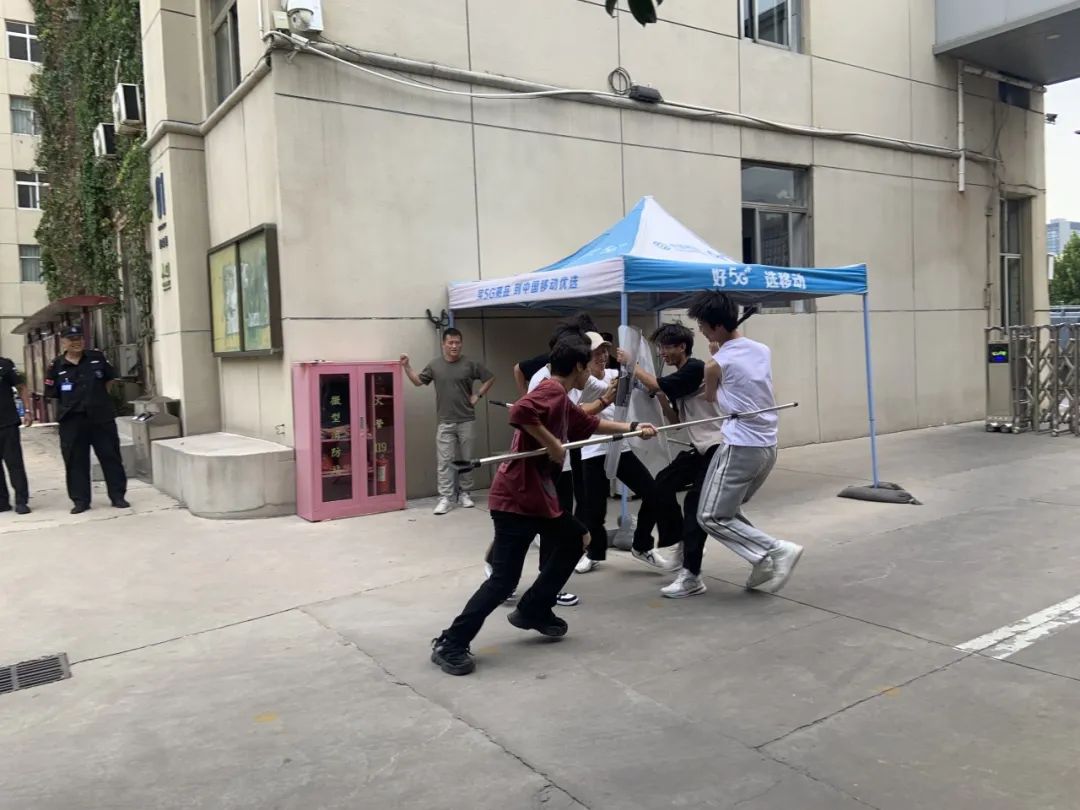 活动现场,王俊博辅导员首先强调了当前社会安全形势的复杂性和维护校园安全的重要性,随后组织了一场紧张刺激的反恐应急演练。演练中,学生们模拟了危险分子袭击校园的情境,通过团队协作,运用所学到的防暴技能,成功“制服”了“危险分子”。这一过程不仅让师生们亲身体验了应对突发事件的紧张氛围,更重要的是学会了如何在关键时刻保持冷静、迅速做出反应,有效保护自己和他人的安全。
