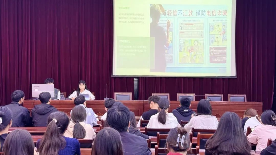 接着由安全教育部部长杨永兴为大家讲解后两部分,第三部分讲述了安全法治教育的内容,主要为大家普及了法律法规知识和安全防范技能,列举网络诈骗和校园暴力方面的相关事例提高大家对网络安全的认识和自我保护能力以及预防校园暴力的发生,然后,从火灾隐患,宿舍用电安全和交通安全三个方面警示大家一定要注意宿舍用电安全。