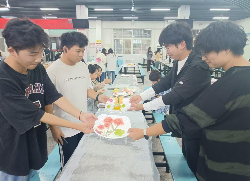 活动一经发布便得到了同学们前所未有的关注,吸引了80组共计400余位同学踊跃报名参加。为了确保每位参与者都能享受到创作的乐趣,我院精心准备了多种优质水果,如色泽鲜艳的火龙果、营养丰富的猕猴桃、香甜可口的哈密瓜等,种类繁多,琳琅满目。