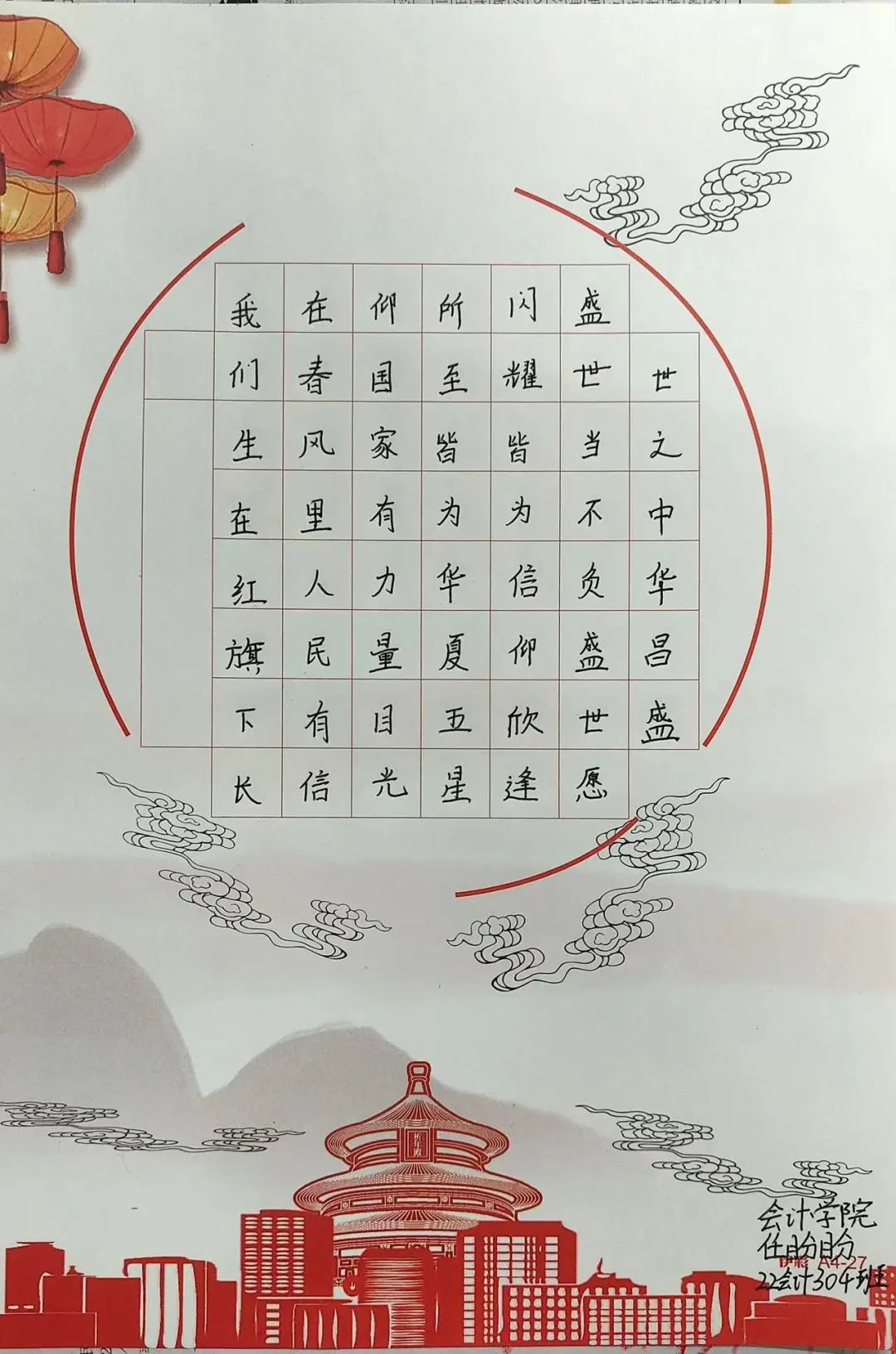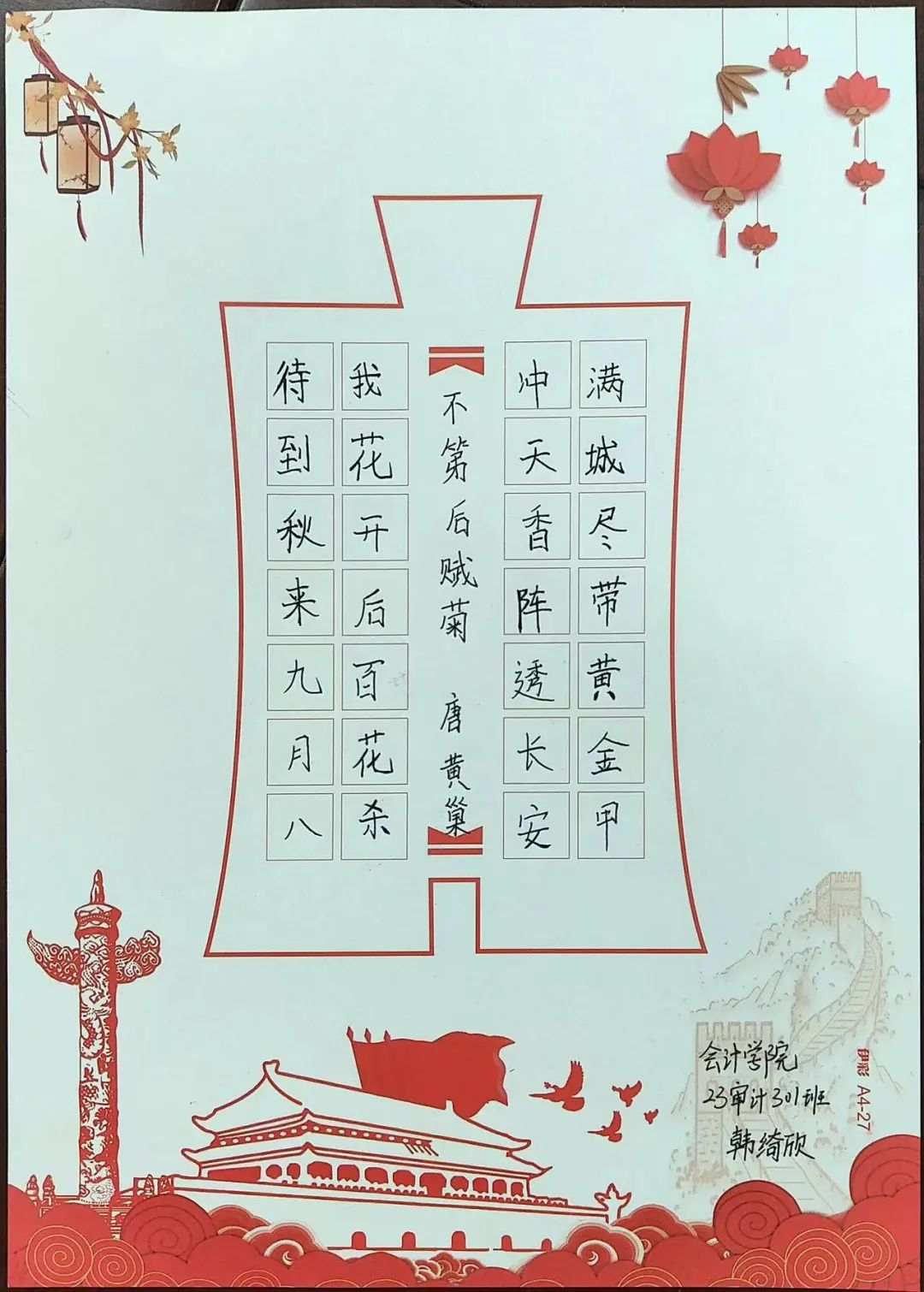 参赛者们充分发挥自己的想象力和创造力,用笔墨书写着对书法的热爱;用色彩描绘着新时代的风貌。展现出会院学子们独特的艺术魅力和无限的创意潜能。