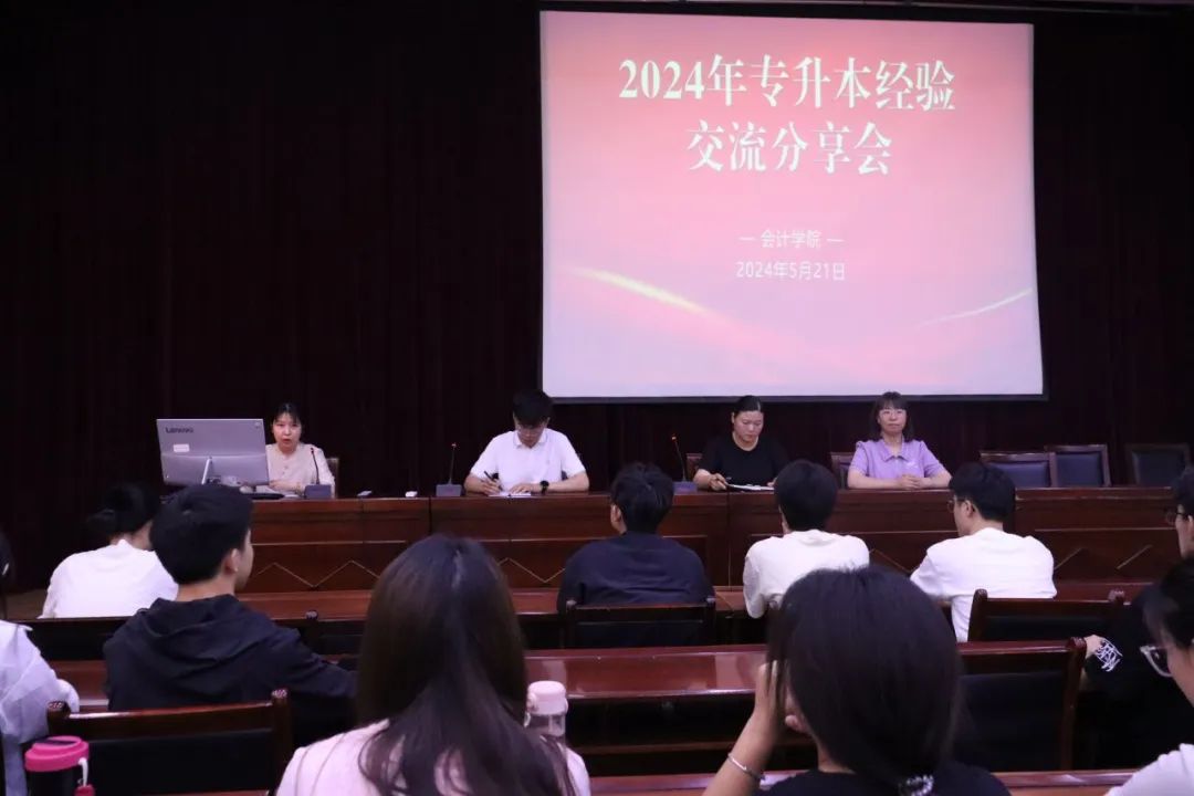 耕耘更知韶光贵,不待扬鞭自奔蹄。为进一步促进优良学风,营造良好的学习氛围,充分发挥榜样示范作用,切实帮助同学们做好对未来的学习规划和掌握必要的备考技巧。会计学院于2024年5月20日下午在6楼会议室举行专升本经验分享交流会,此次会议由王蕾老师主持。