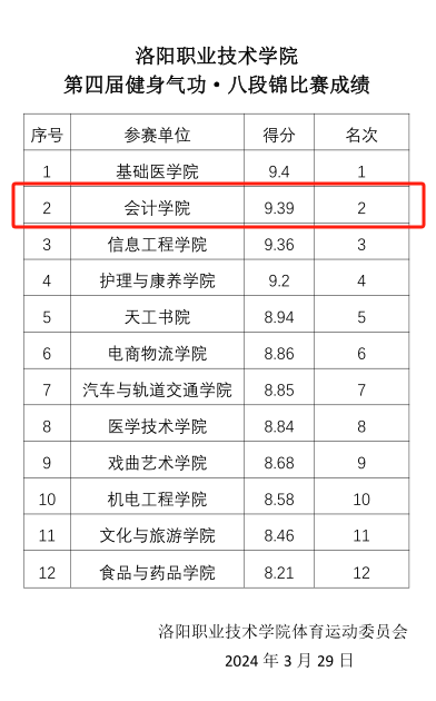亲爱的同学们,今天小会要给大家分享一个激动人心的消息!在最近举行的八段锦比赛中,我们学院凭借出色的表现,成功获得了第二名的佳绩!