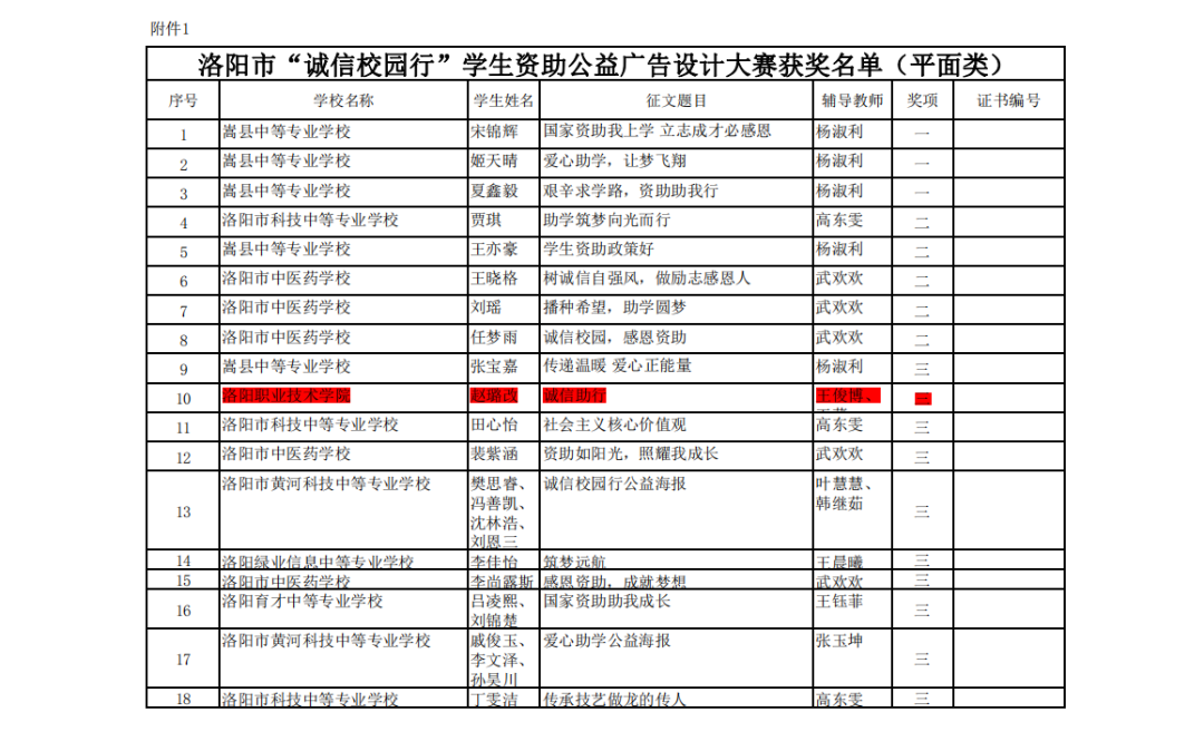 近日,洛阳市教育局举办的《诚信校园行》主题广告设计大赛圆满落幕。我院选送的赵璐改同学的平面设计作品《诚信助行》,在众多参赛作品中脱颖而出,荣获洛阳市的三等奖。这一成绩的取得,不仅展现了我院学生的创意与才华,更彰显了我院在诚信教育方面的显著成果。