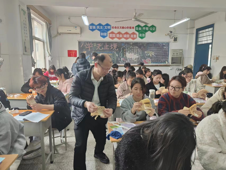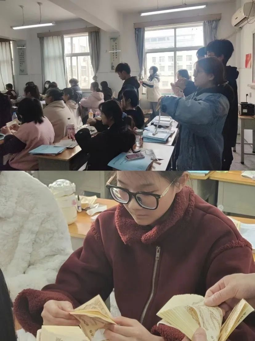 当天上午,会计学院副院长王长生和苏畅副行长一行共同为2023级大数据与会计302班的同学上了一堂生动有趣的出纳实操课——点钞技能训练与真假币识别。