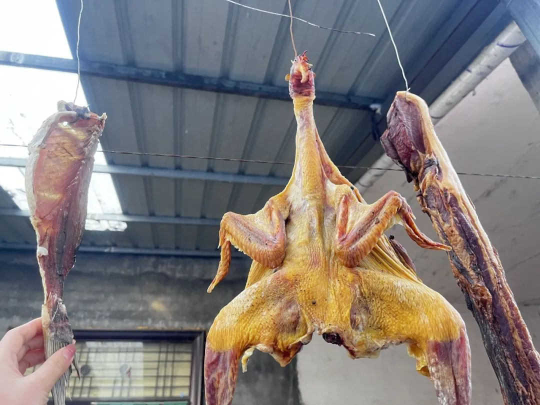 快过年了,家家户户都开始筹备一些冬季的吃食。在春节前我家一贯的习俗就是腌制腊肉、鸡肉、鱼肉等统称为腊肉,把它们晾晒在自家屋檐下等到春节就能招待客人。爸爸和我会在去早集采购新鲜的肉类,每年一到腊月就是腌制腊肠腊肉的好时机。爸爸会把处理好的肉类做成腊肉,挂满房前屋后的竹竿。一块块油亮亮的腊肠,鲜香扑鼻的味道,油润弹嫩的口感,滋味悠长的腊香,光是看一看,就已经口水直流了。久而久之,春节前齐聚一堂,采买年货,晒腊肉,包饺子,成为了家里具有特殊意义的时刻。