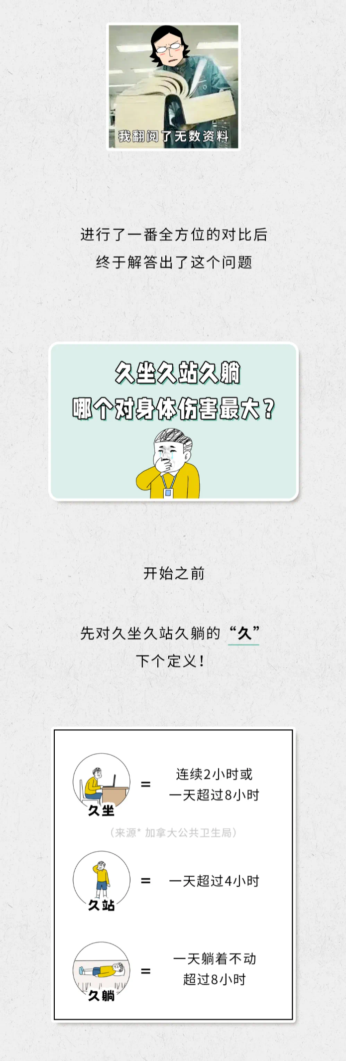健康科普|久坐 VS 久站 VS 久躺,哪个对身体伤害更大?