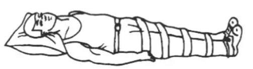 如果没有上述材料的话,可以将上肢固定在躯干上,下肢固定在对侧健肢上。