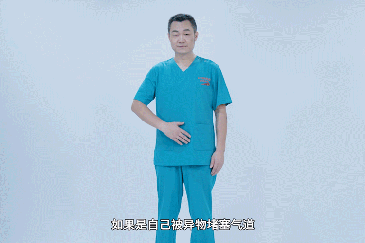 如果四周没有物品也没有人的话,就一手握拳,另一只手包住拳头,拳眼对准自己肚脐以上两横指位置,快速冲击、反复按压自己腹部,直到异物排出。