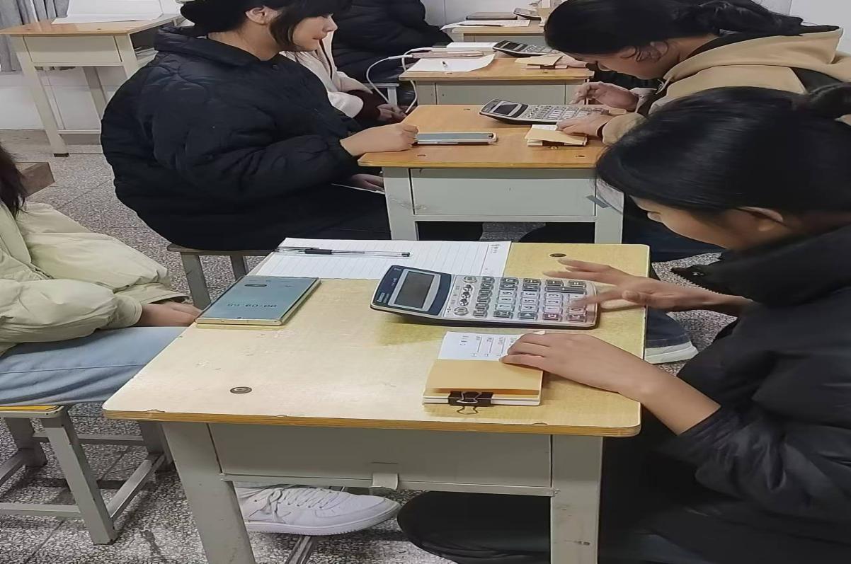 活动现场,参赛学生们各展所长。翻打传票比赛环节,选手们需要在规定时间内,准确无误地完成传票的翻打和录入,比赛按照时间与准确率进行,充分展现了她们扎实的会计基本功和快速反应能力。