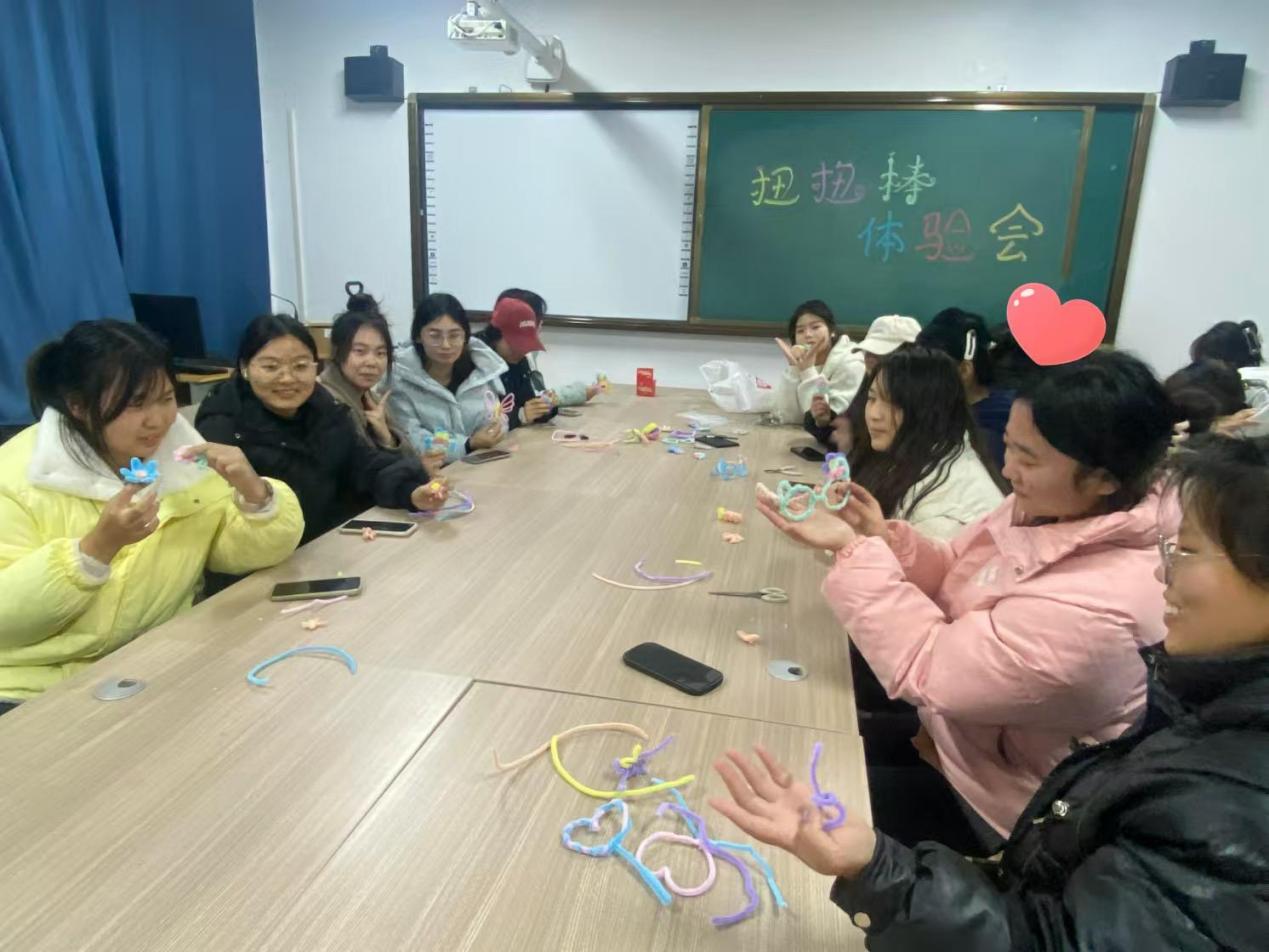 为丰富同学们的课余生活,提升校园文化氛围,增强学生之间的互动与交流,大学生创新创业中心非遗文创部门特别推出文创产品——扭扭棒。该产品不仅具有趣味性和娱乐性,还能有效缓解同学们的学习压力,丰富同学们的课余生活。2024年12月3日,一场别开生面的创意手工活动在大创中心109室展开,吸引了众多热爱文创的学生参与其中。