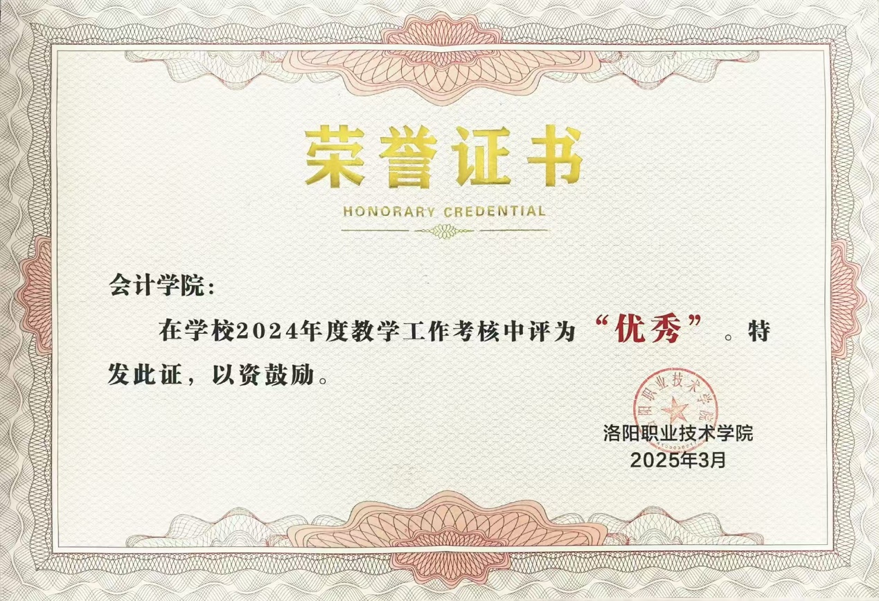 2025年3月6日,在学校2024-2025学年第二学期教学工作会议上,会计学院以考核第一名的成绩,荣膺2024年度教学工作考核优秀单位称号。这一荣誉不仅是学校对学院过去一年教学管理工作取得成绩的高度认可,更是其在顺应学校进一步全面深化改革、加快推进高质量跨越式发展的有力见证。