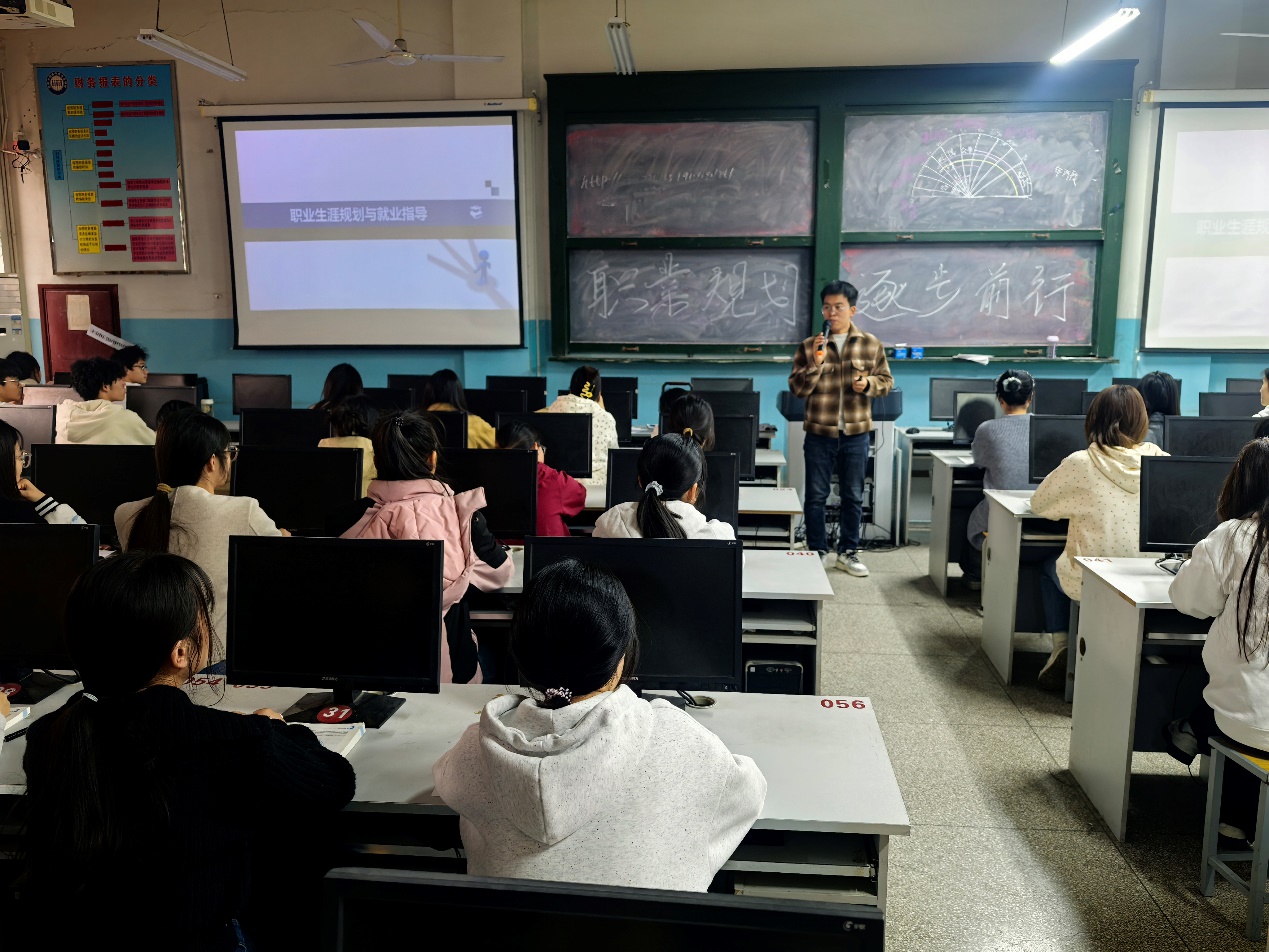 韦元民听取了由滕帅老师主讲的,主题为 “职业规划、逐步前行”的《职业生涯规划与就业指导》课程。