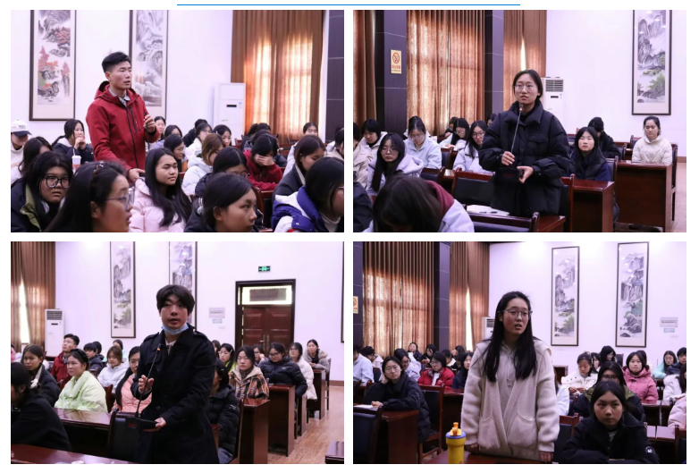 在互动提问环节,同学们踊跃发言,围绕 “跨专业参赛如何突出优势”“职业目标与现实冲突时如何平衡”“大赛答辩的礼仪与技巧” 等问题向赵婧请教。赵婧同学结合自身观察与思考,逐一给出细致解答,同时鼓励大家:“职业规划没有标准答案,要在探索中找到适合自己的路径,勇敢尝试就是成长的开始。”现场讨论氛围热烈,不少同学表示“解答了一直以来的困惑”“对参赛和职业规划有了更清晰的方向”。